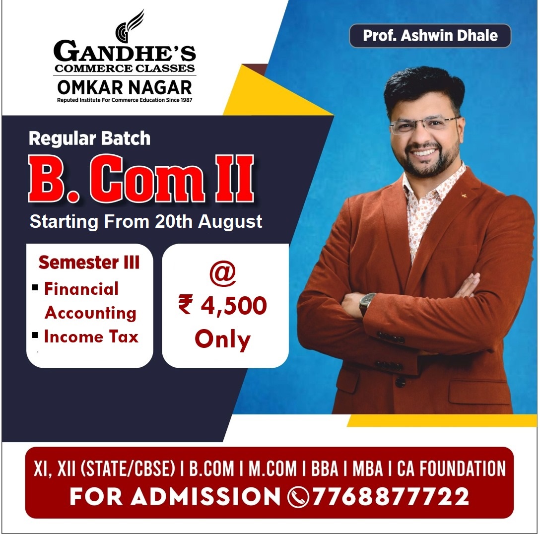 Batch For B.com Sem-III Starting At Gandhe’s Commerce Classes Omkar Nagar, Nagpur.